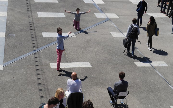 The artists translate emotions from the public, transform them to send them back in a dancing envelope. One One One suggests a specific relation to the public, different from theater performances. The performers take over the public space as a field for experimentation and non-representation. The performers engage physically and mentally destabilizing a certain idea of reality, giving them an opportunity to explore their limits or their relationship to transgression.